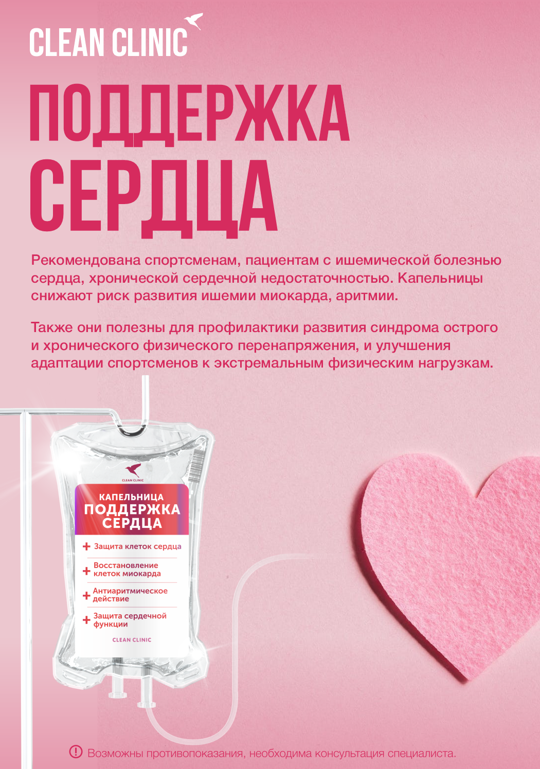 Рекомендована спортсменам, пациентам с ишемической болезнью сердца, хронической сердечной недостаточно-стью. Капельницы снижают риск развития ишемии миокарда, аритмии. Улучшения адаптации спортсменов к экстремальным физическим нагрузкам.