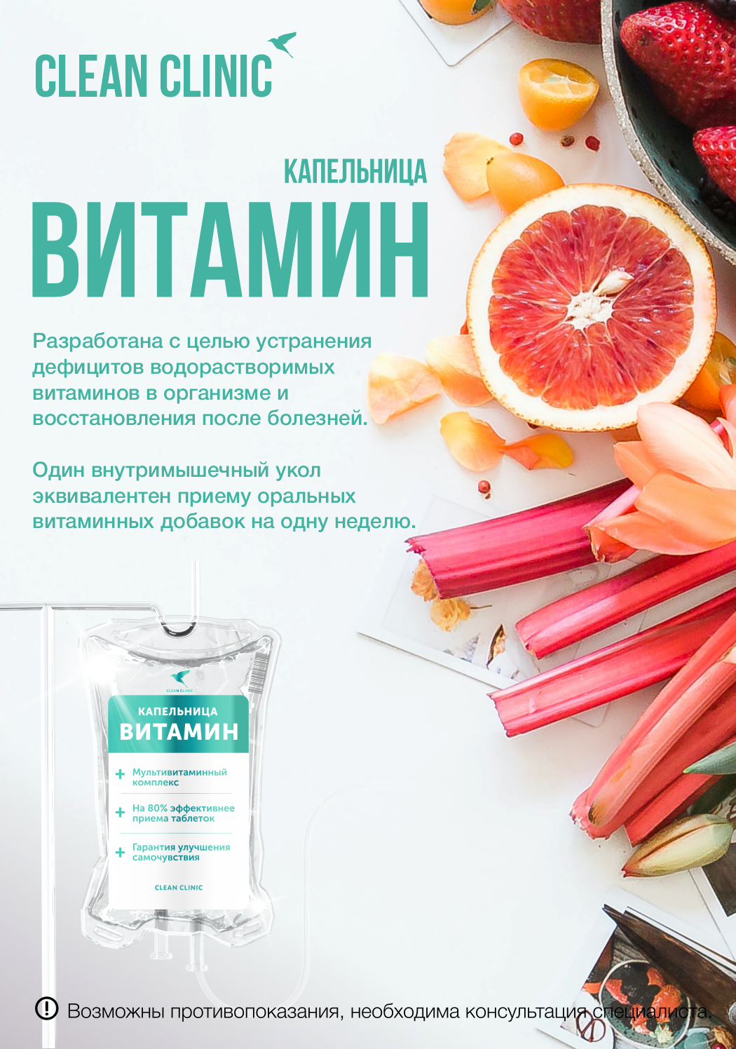 Добрый день ! Пару дней назад почувствовала себя плохо , понимаю что подхватила вирус , состояние сонное , сопли , вялость. В ВК увидела пост капельницы Clean Clinic Капельница Антивирус . Болеть некогда позвонила в клинику , сказали приезжайте поможем. Не поверите 2 капельницы сделала и вуаля я опять бегу на работу , вируса как не бывало . Третью закрепляющую сделала и прекрасно себя чувствую . Спасибо заботливым сотрудникам Clean Clinic