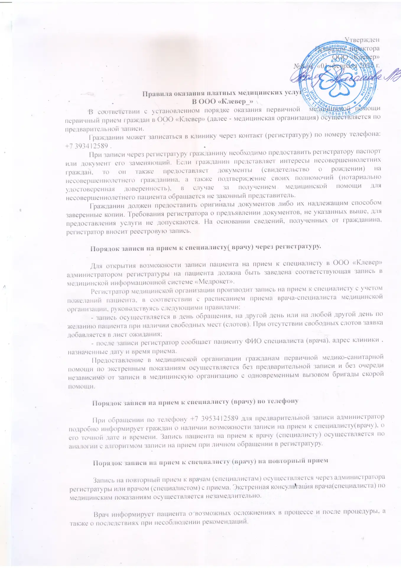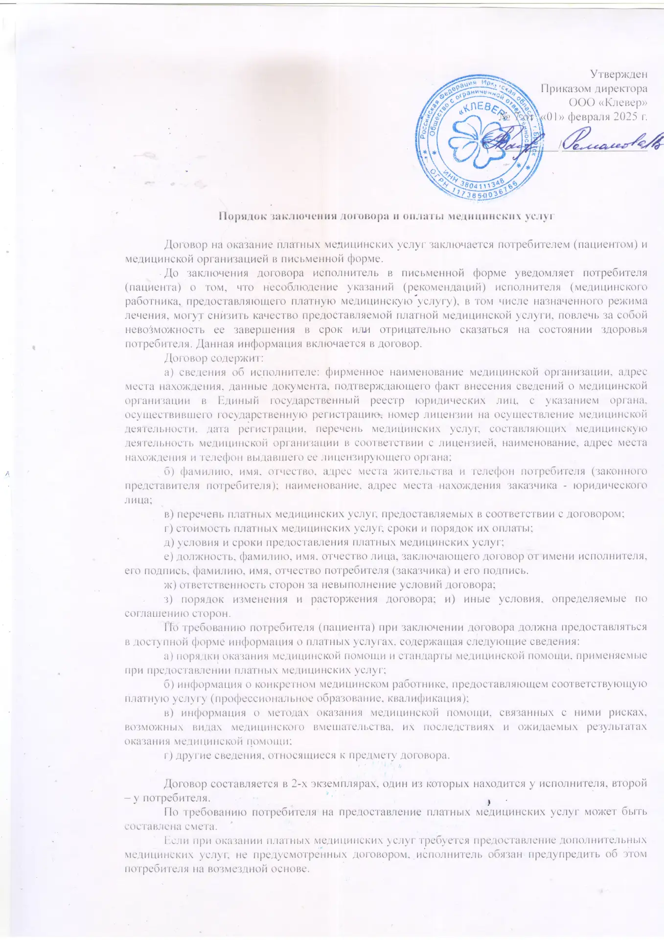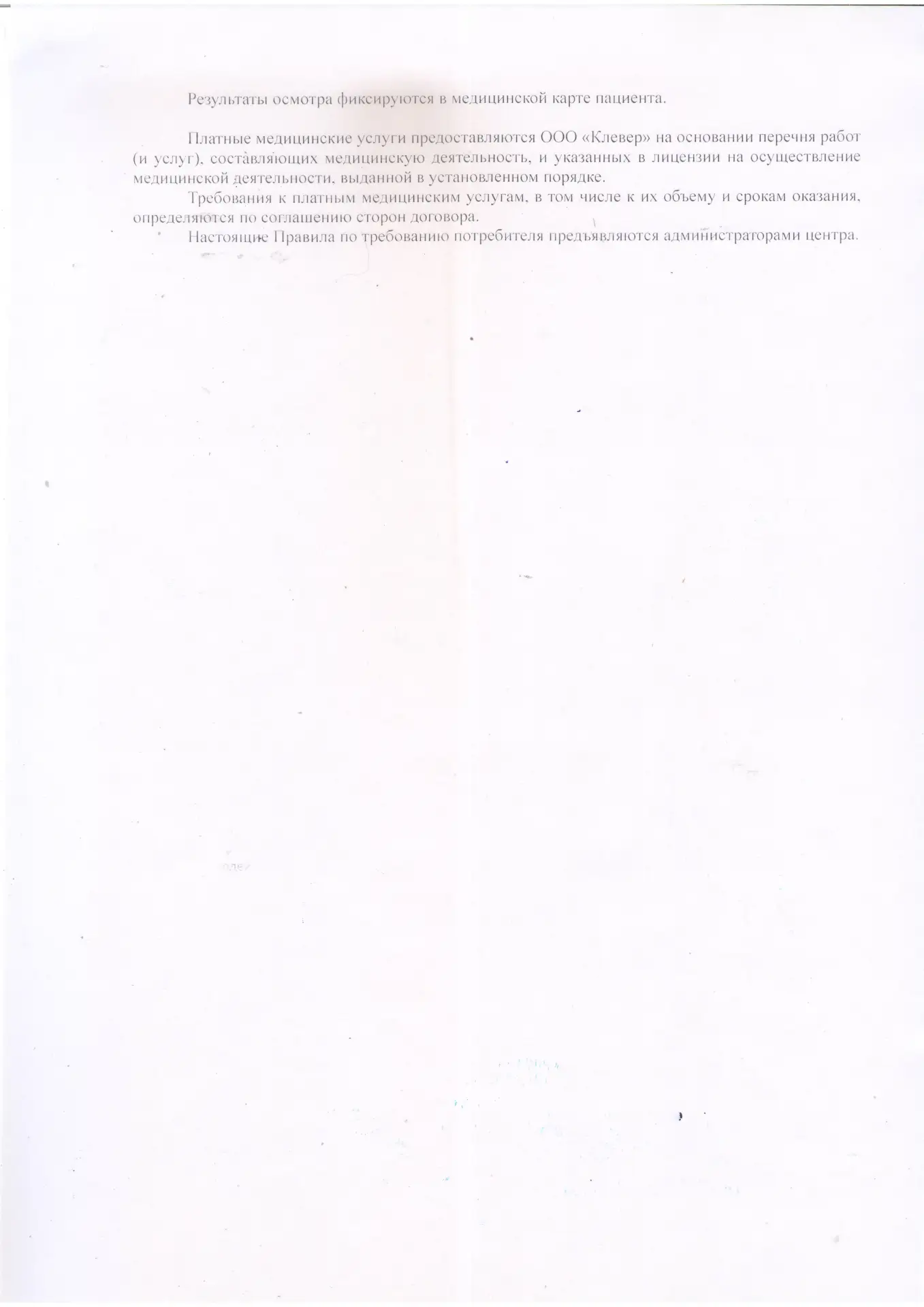 Правила оказания платных медицинских услуг в ООО «КЛЕВЕР»