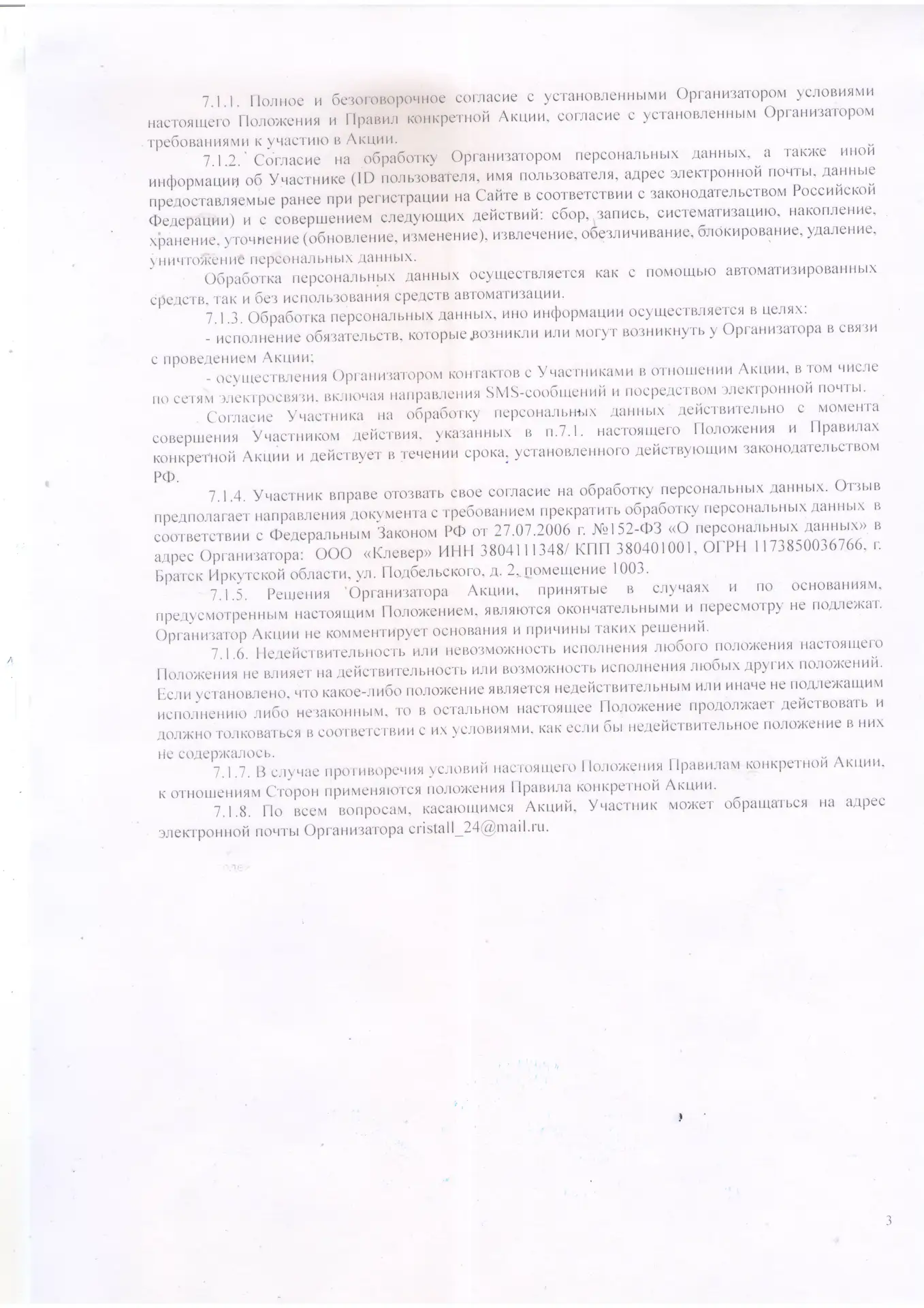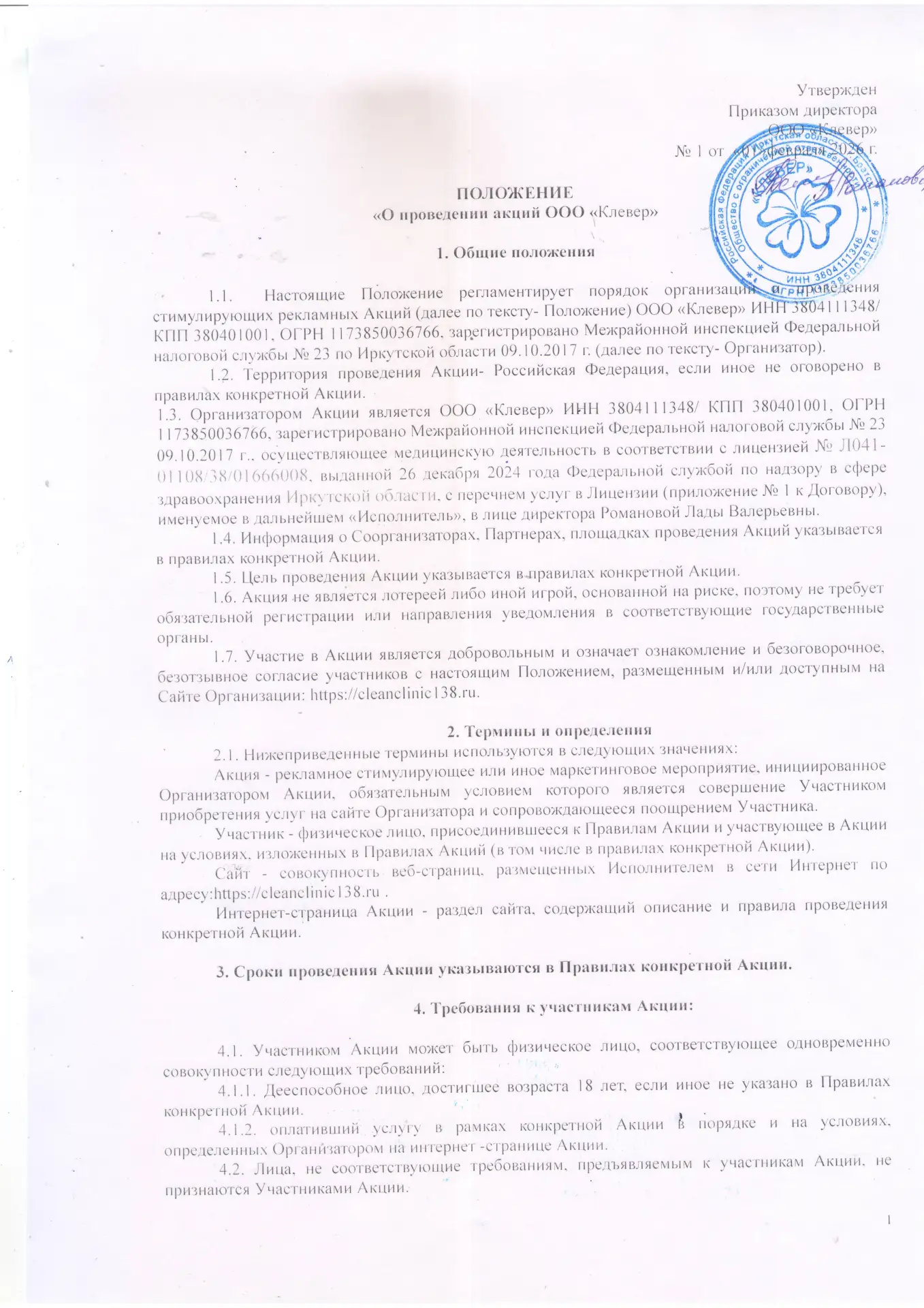 Положение О проведении акции ООО «КЛЕВЕР»