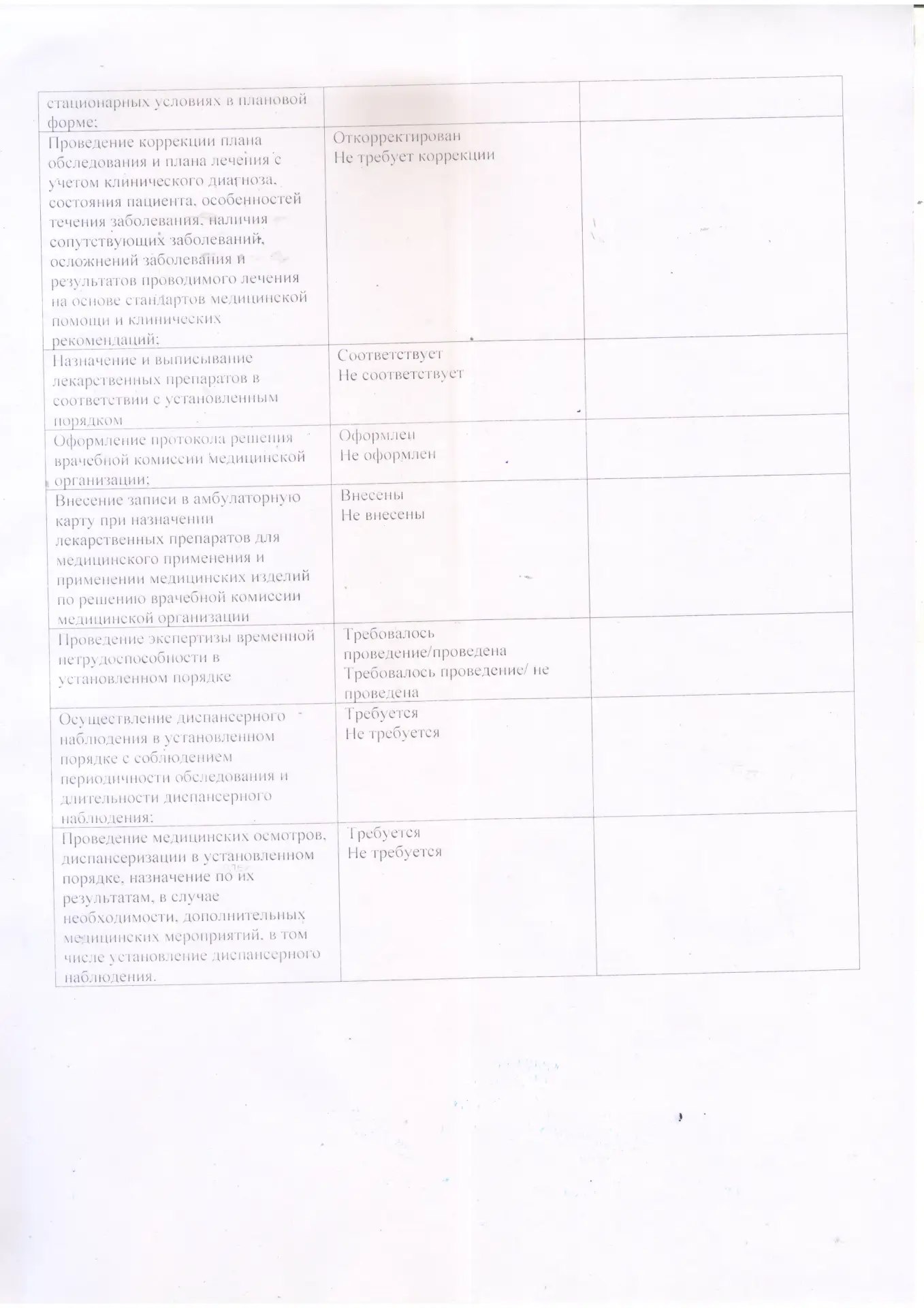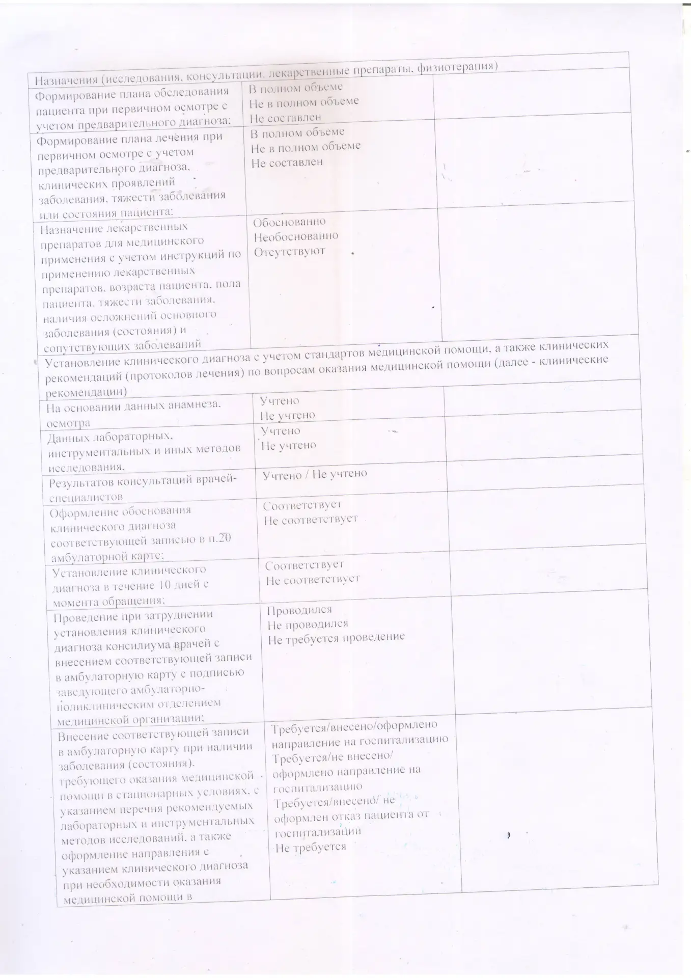 Критерии качества по условиям оказания медицинской помощи
